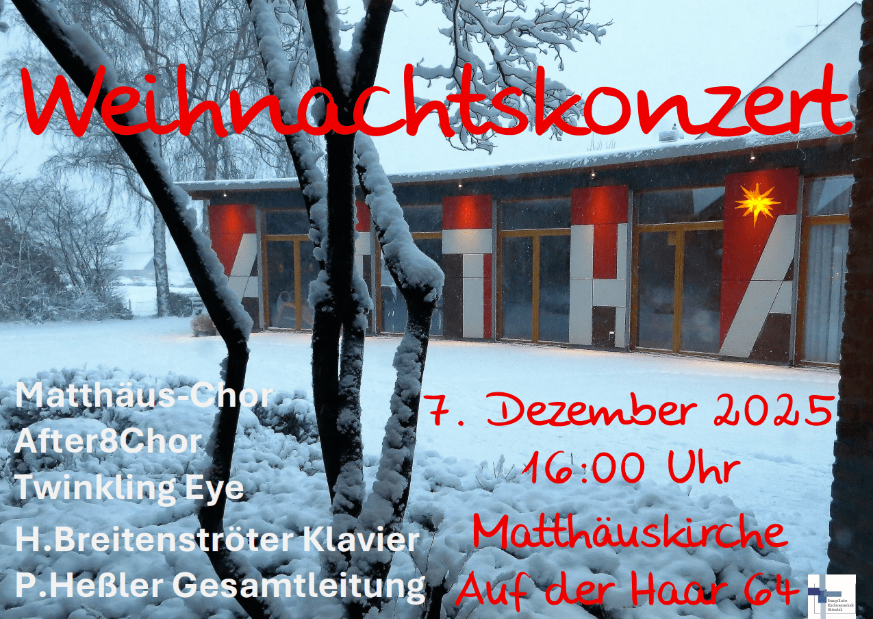 Die Matthäus-Chöre setzen auch in diesem Jahr ihre geschätzte Tradition fort und laden herzlich zum großen Weihnachtskonzert ein. Das festliche Konzert findet am 2. Adventssonntag, dem 7. Dezember 2025, um 16.00 Uhr in der Matthäuskirche, Auf der Haar 64, in Gütersloh statt.