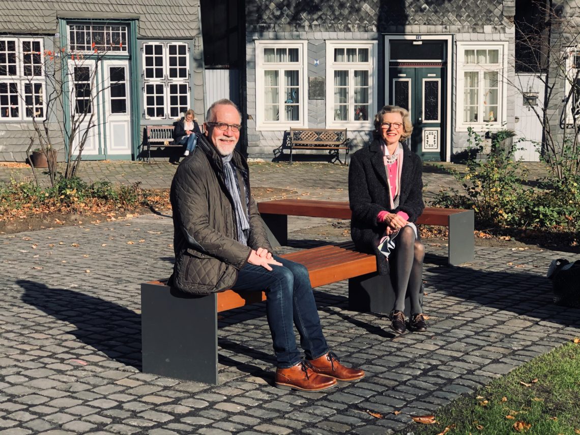 Probesitzen auf den neuen Bänken: Ute Luther und Joachim Martensmeier testen die neuen Sitzgelegenheiten.