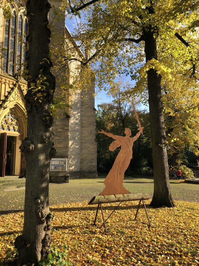 Mutter Heimat ruft (Martin-Luther-Kirche) -Ein russisches Denkmal in Wolgograd - in Gütersloh ein Balanceakt
