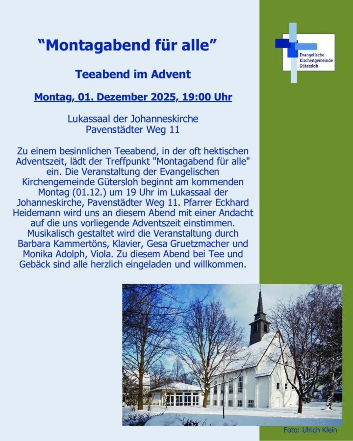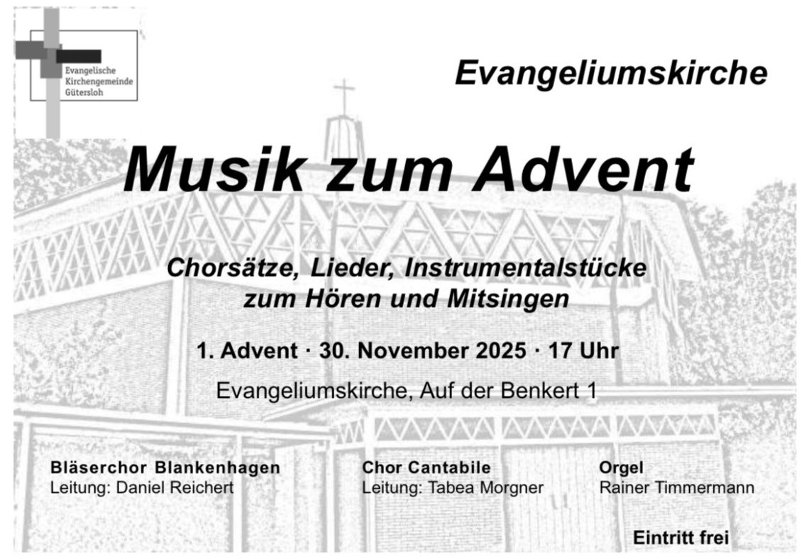 Die Adventskonzerte in der Evangeliumskirche haben eine lange Tradition. Diese wird am Sonntag, 30. November 2025, um 17.00 Uhr fortgesetzt.