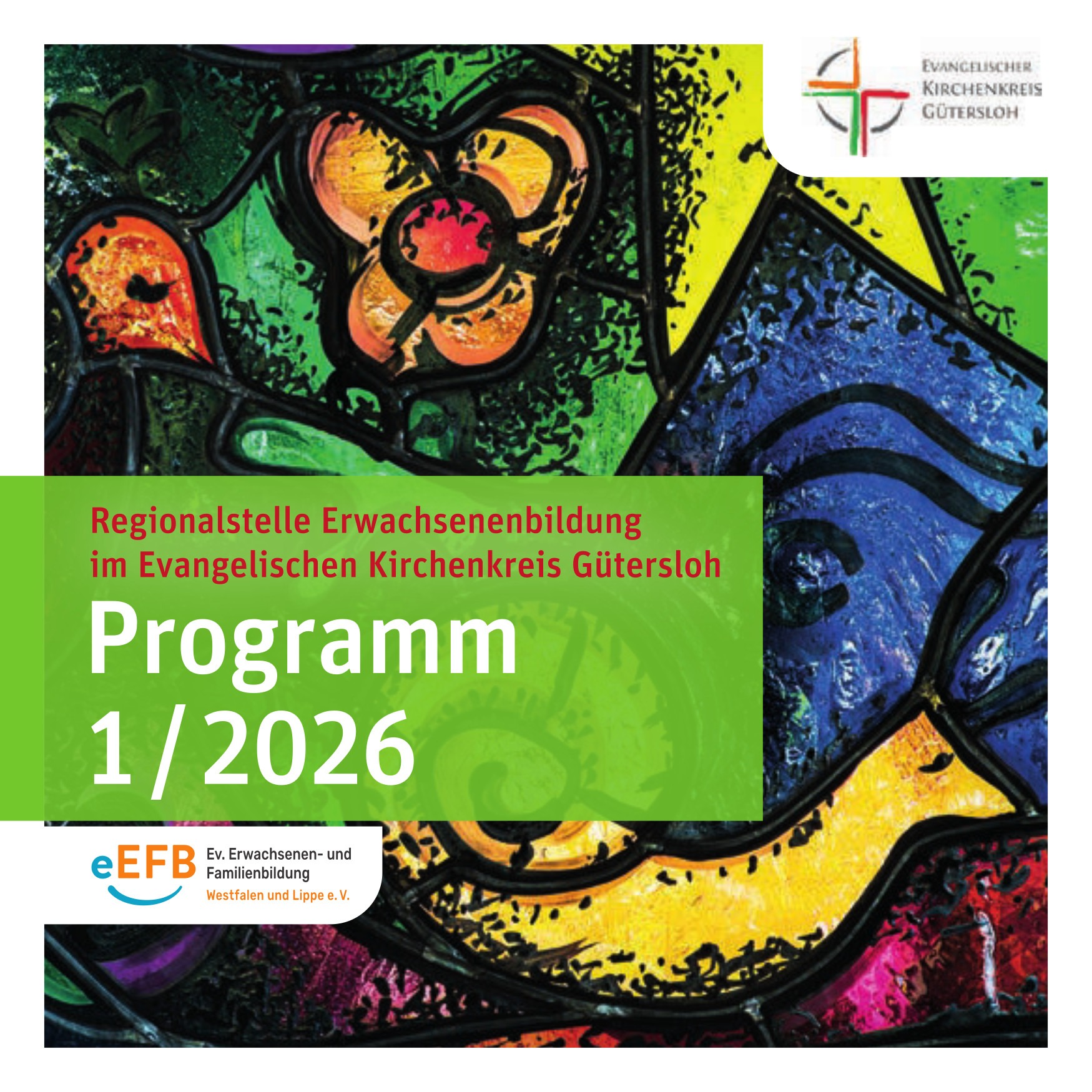 Druckfrisch liegt das neue Programm der Erwachsenenbildung des Evangelischen Kirchenkreises Gütersloh und seinen Kirchengemeinden mit über 60 Angeboten vor. Die quadratisch gestalteten Halbjahresprogramme strahlen den Lesenden jeweils mit einen Bildausschnitt aus den Buntglasfenstern „Schöpfung“ des Architekten Fritz K. Wachtmann entgegen (Matthäuskirche Gütersloh) entgegen. Farbenfroh rückt jedes Halbjahr ein anderer Aspekt in den Fokus und lädt ein, genauer betrachtet und erforscht zu werden – ein Sinnbild fürs lebenslange Lernen.